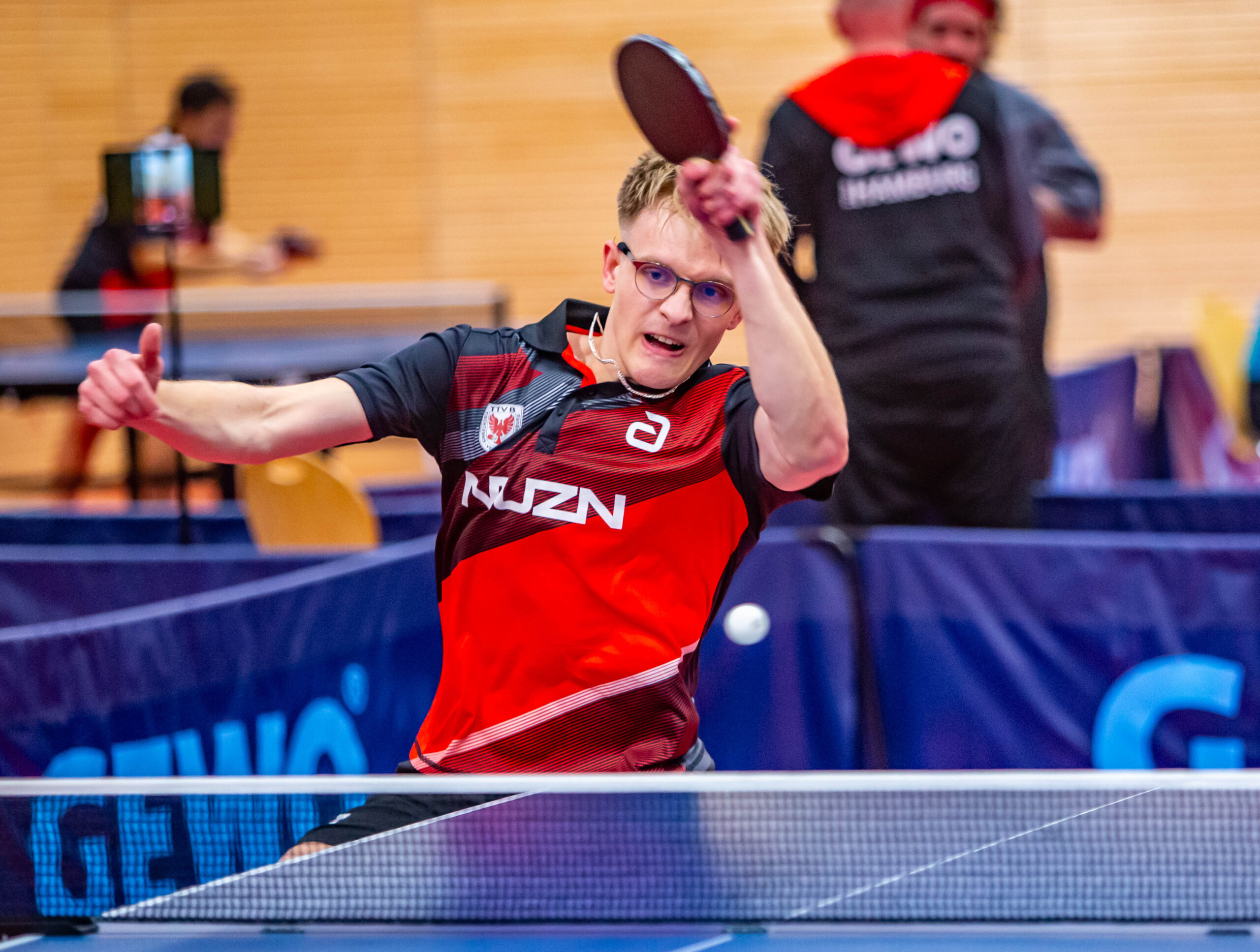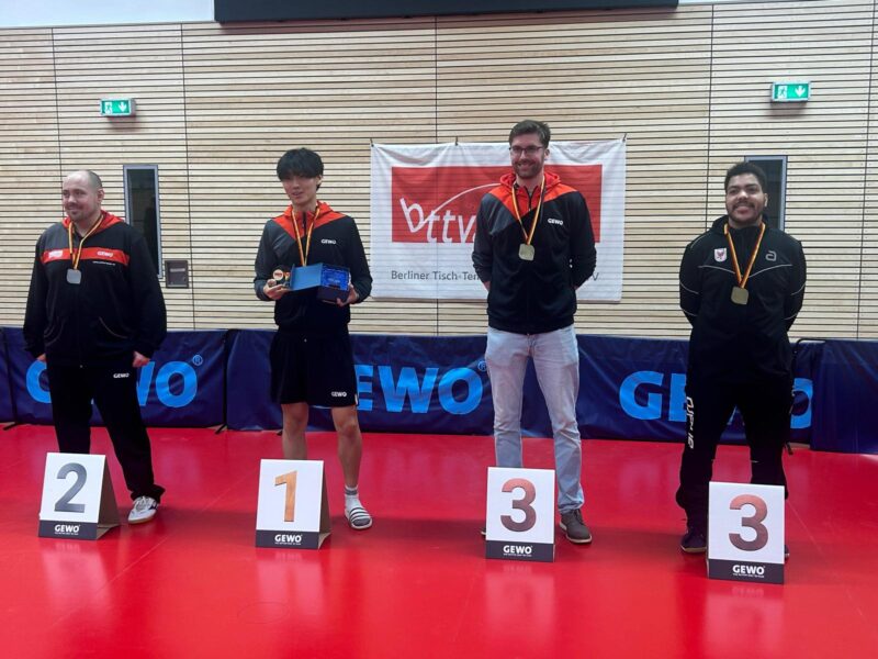 Deutlich besser lief es für Kenan, der seinem Gegner beim 4:0-Erfolg keine Chance ließ und sein Ziel, das Halbfinale, erreichte. Der Bayer, der für seinen geliebten Sport regelmäßig den weiten Weg nach Brandenburg auf sich nimmt, verlangte dort dem topgesetzten Sebastian Borchardt alles ab und unterlag erst hauchdünn mit 9:11 im siebten Satz. Dennoch eine sehr starke Leistung des stets gut gelaunten Linkshänders. Ob er unseren Verband bei den Deutschen Meisterschaften der Erwachsenen vertreten darf, entscheidet sich erst nach der Vergabe der Verfügungsplätze. Chancen auf einen Start – möglicherweise auch als Nachrücker – hat er aber auf jeden Fall. Wir drücken die Daumen.